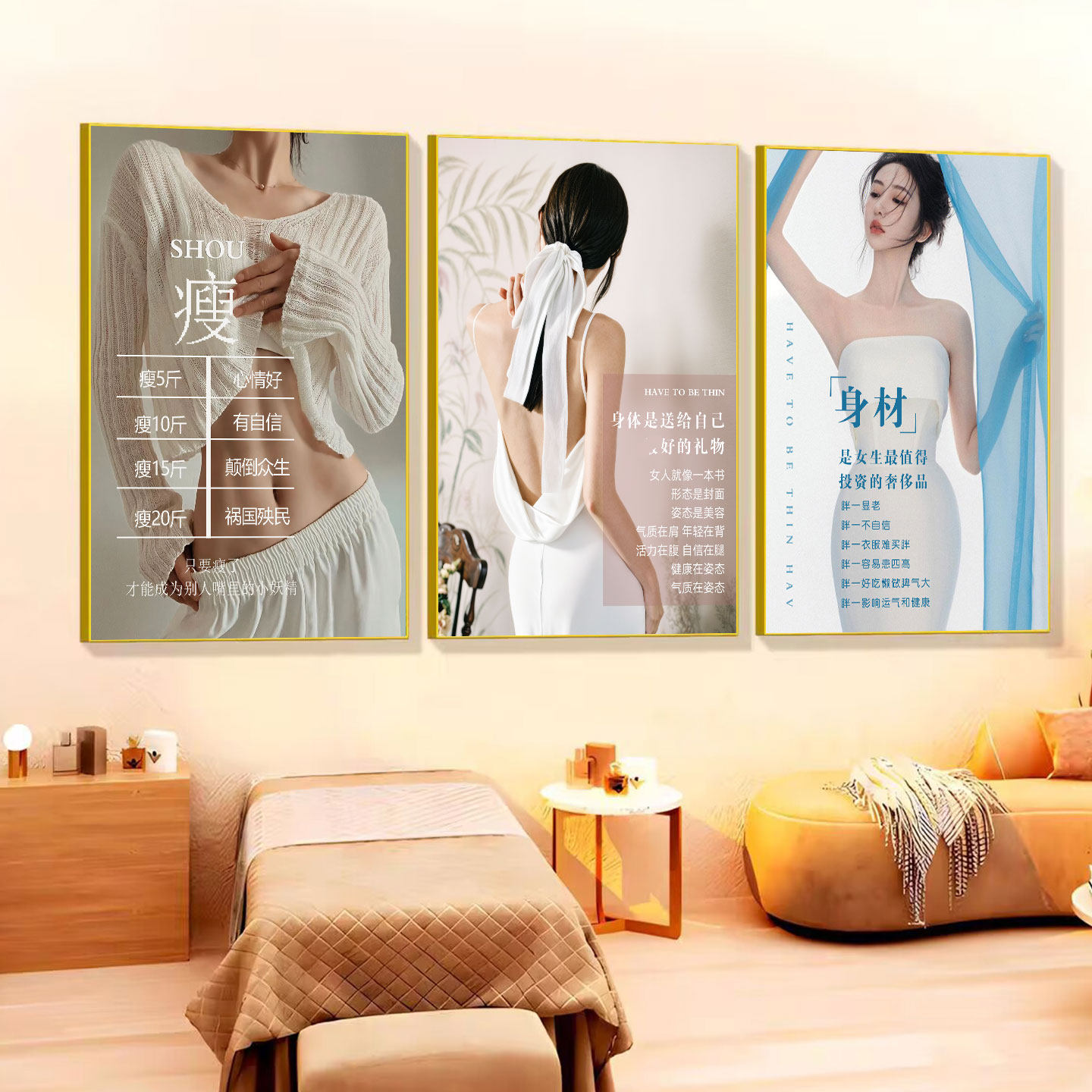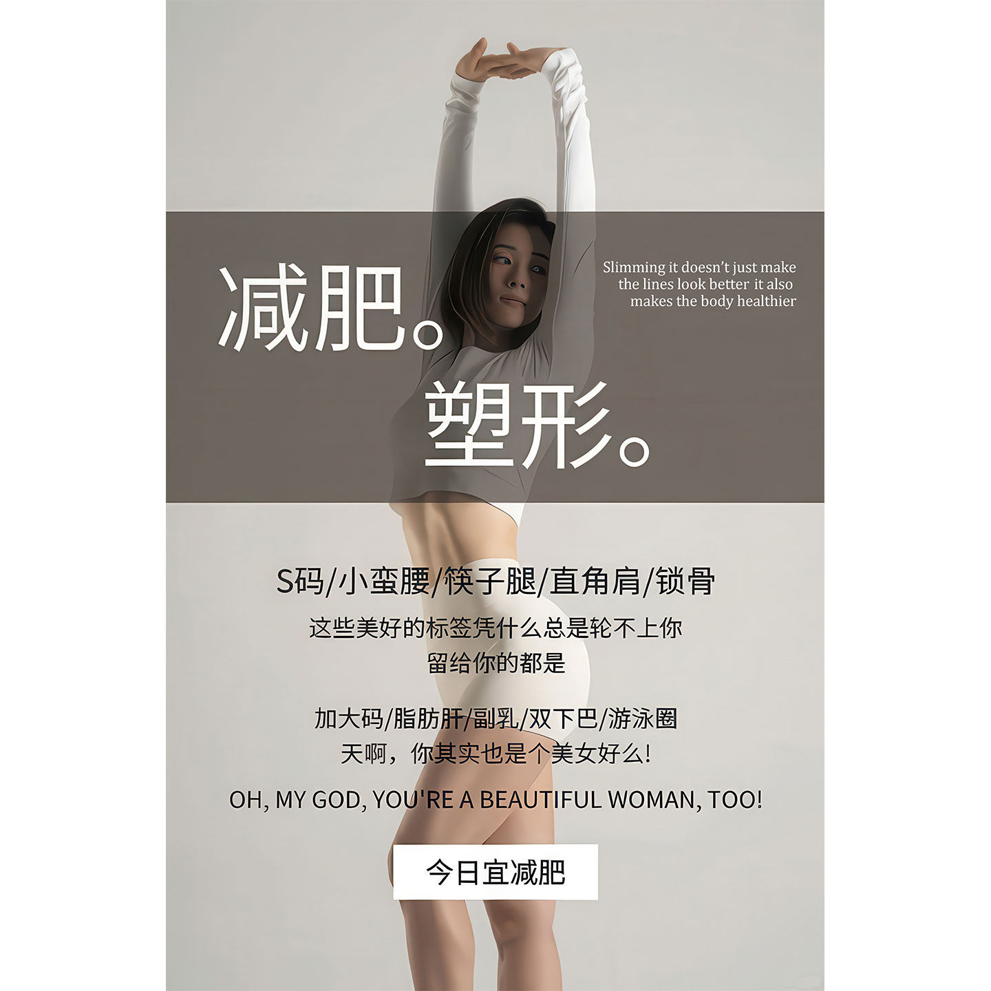 减肥塑形海报瘦身励志美容院广告海报身材管理墙贴画墙面装饰画hb
