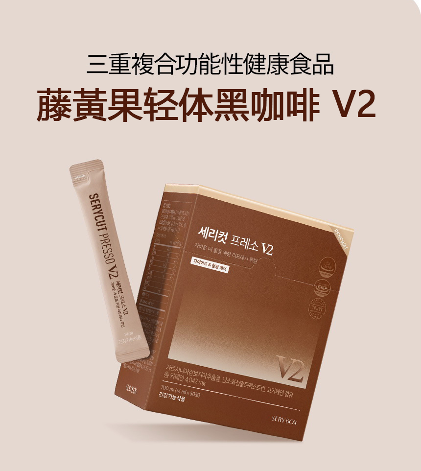 韩国serybox咖啡V2金泰熙女团藤黄果黑咖啡液无糖0脂阻断体重管理