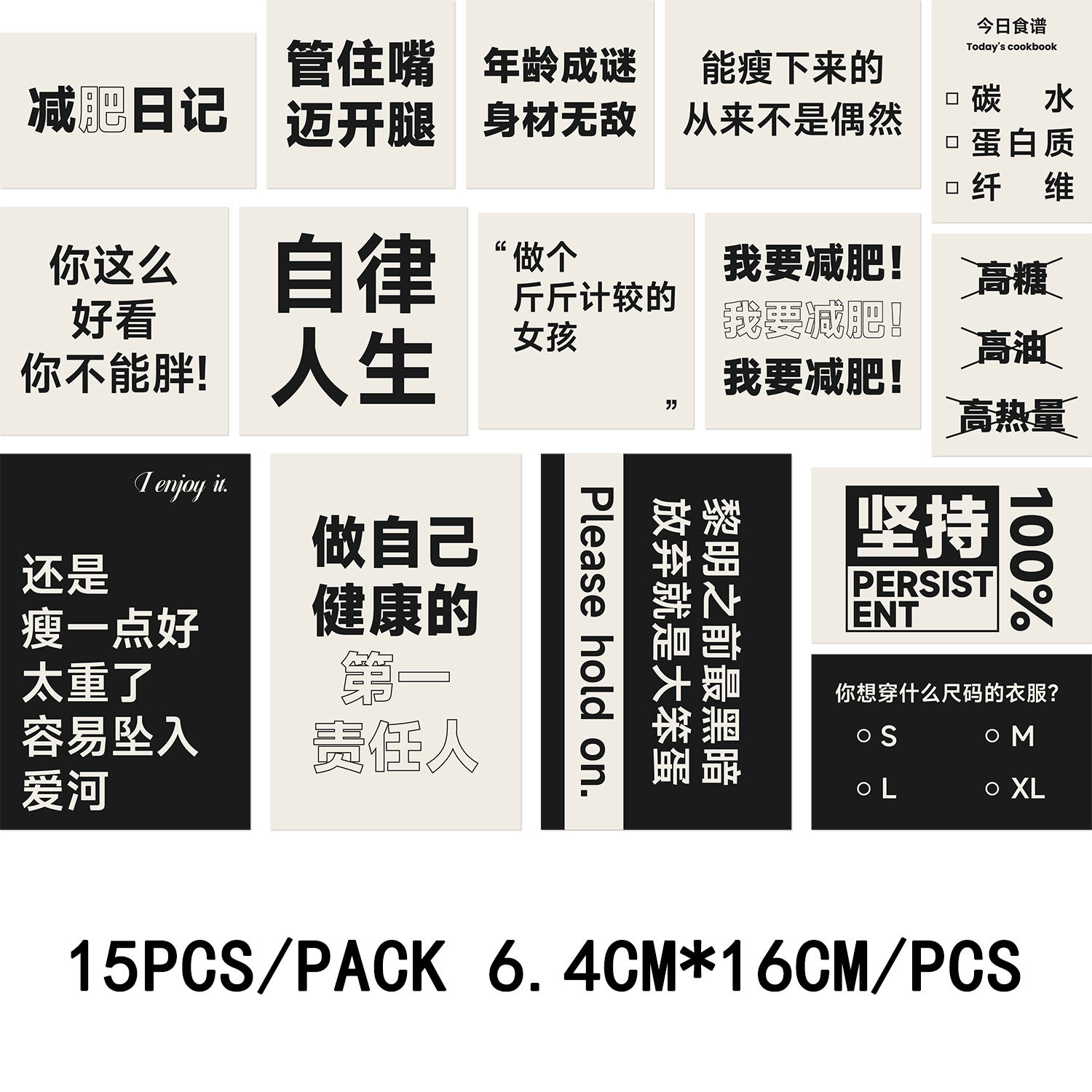 30张减肥宣言卡片ins风暴瘦励志自律文字卡片卧室宿舍墙面装饰