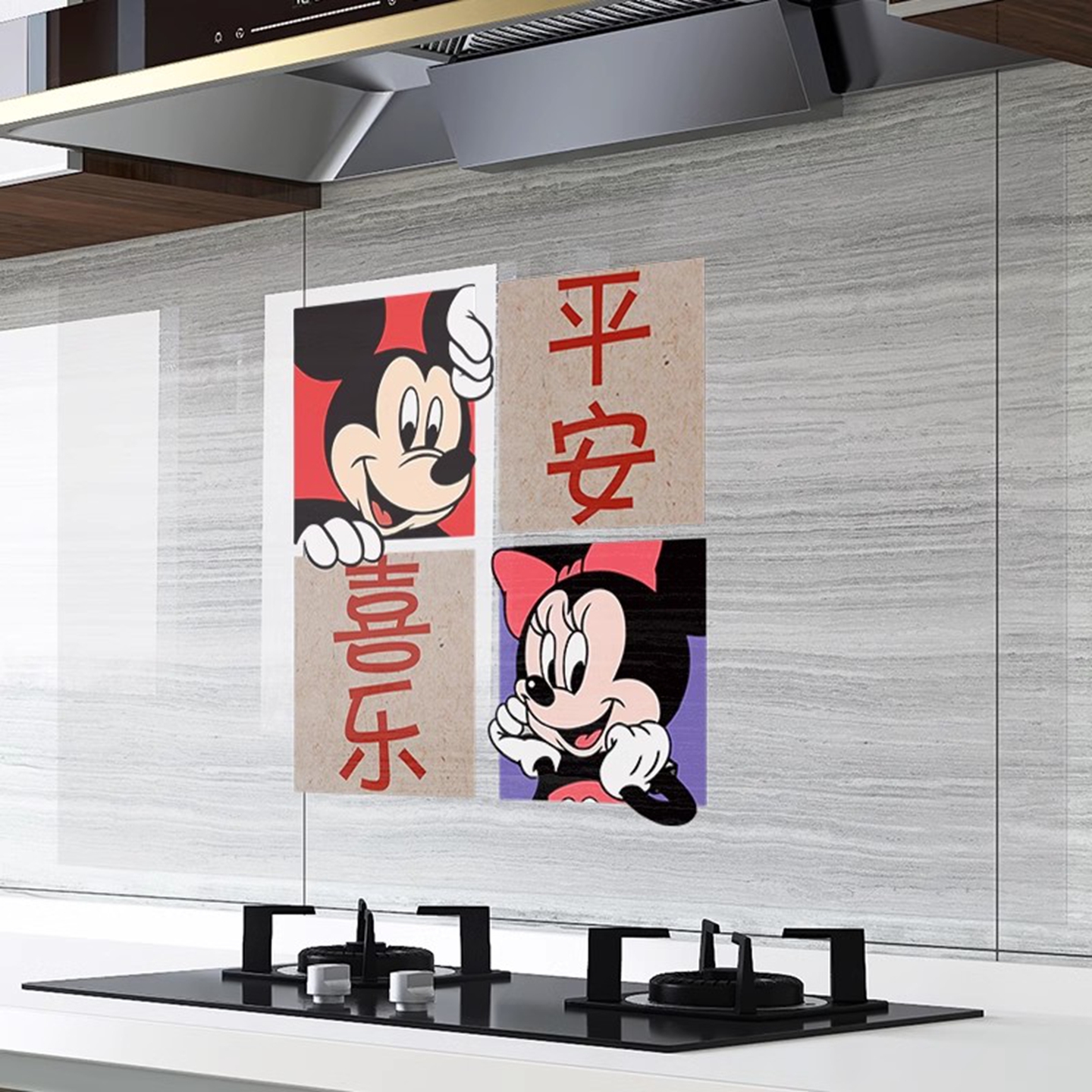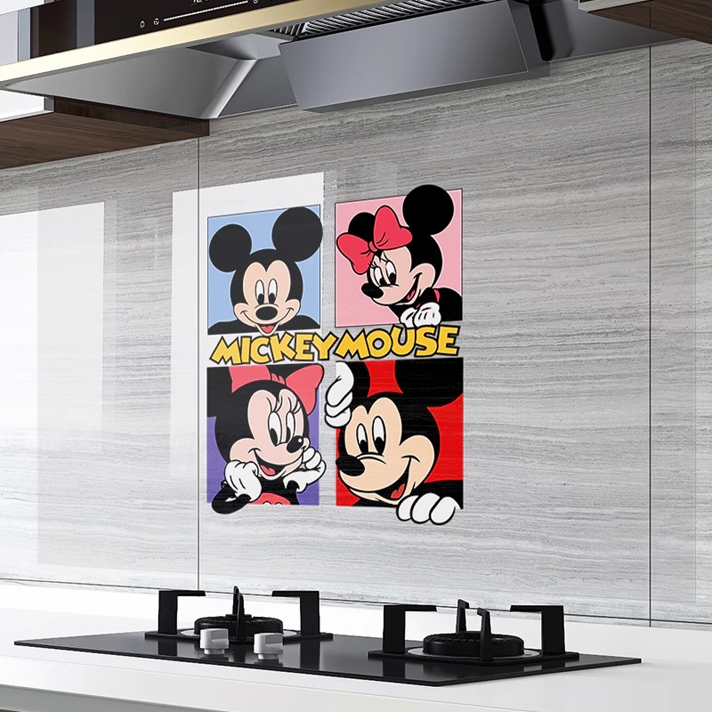 米奇厨房防油贴纸防火耐高温防水自粘可擦洗油烟机灶台用墙纸贴膜