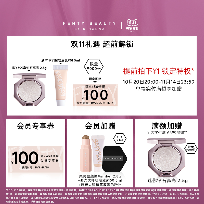 淘宝天猫【双11预售】FentyBeauty蕾哈娜调光大师粉底液以光遮瑕持妆干皮优惠券折扣价格–彩云间