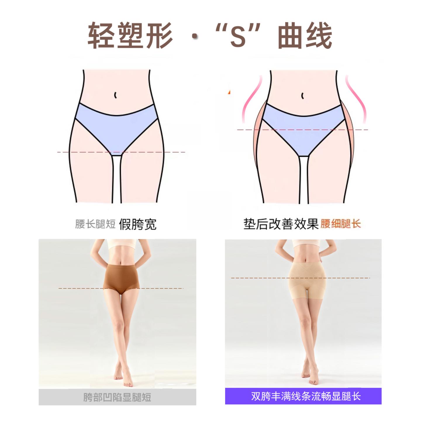 FUNWE隐形丰胯裤无痕增胯塑身提臀收腹假屁股改善假胯宽凹陷神器