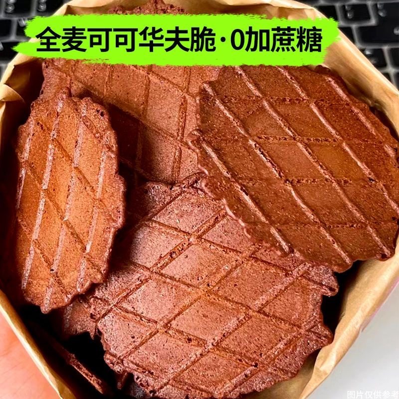 减肥解馋小零食糖人专用主食代餐薄脆饼干无蔗糖全麦可可华夫脆办公室下午茶休闲食品适合宿舍场景食用符合自律标准易携带