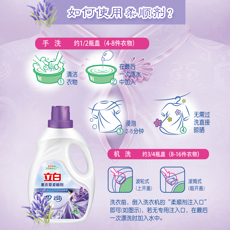 > 立白薰衣草柔顺剂12斤护形柔顺防静电持久留香伴侣