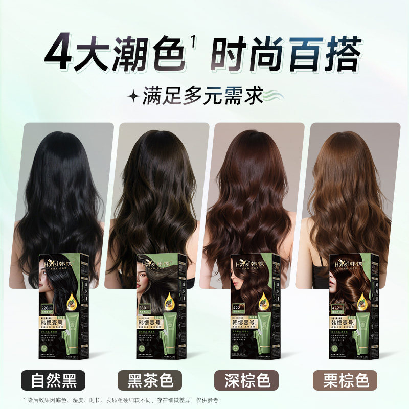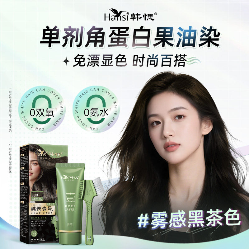 > 韩愢壹号染发膏染发剂植物纯黑茶色显白单剂角蛋白护染膏染发梳