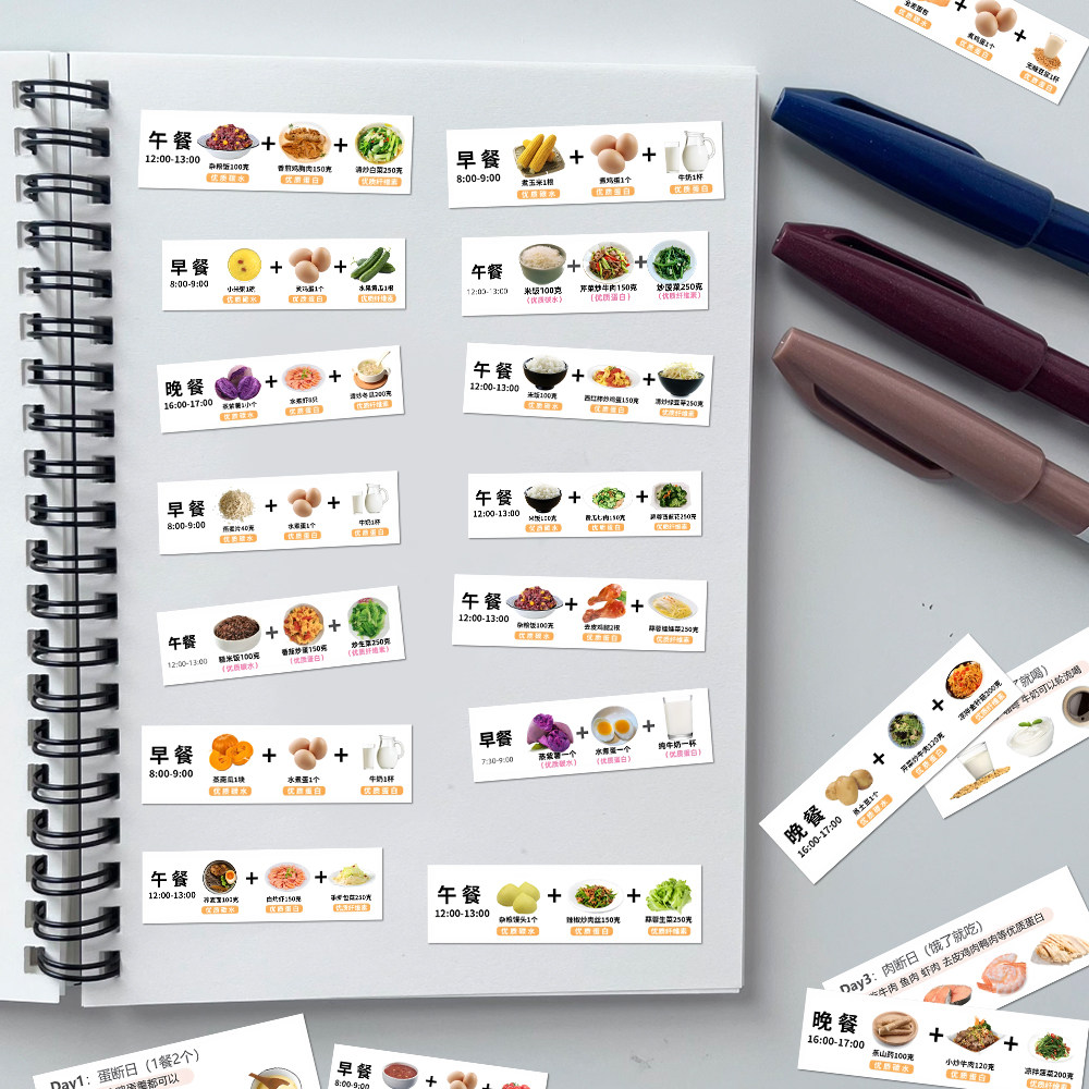 您的位置: 126张减脂轻断食贴纸健康减肥饮食食谱参考笔记本iPad贴画防水