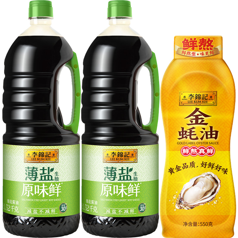 李锦记薄盐生抽原味鲜金蚝油减盐美味健康之选1.52kg*2+550g