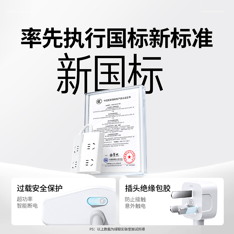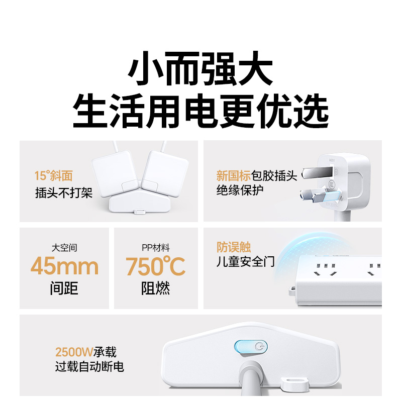 【百补立减25+金刚券,4位5孔0.5m仅22.4起】新国标3C认证!一体式过载保护开关!15°斜面插头不打架!多设备充电!加粗33%高导铜芯,电流更快更稳定!高阻燃外壳+防误触安全门、为宝宝好奇心护航