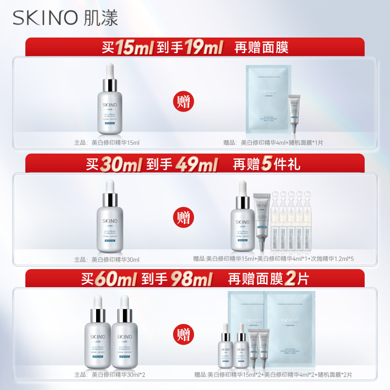 您的位置: SKINO肌漾3.0美白修印精华淡化红黑痘印烟酰胺提亮源头阻黑修红印