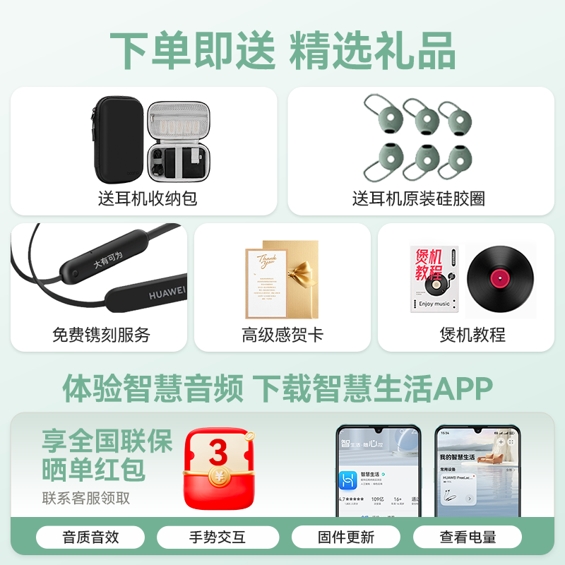 华为耳机Freelace活力版无线蓝牙耳机运动挂脖式耳机降噪政府补贴