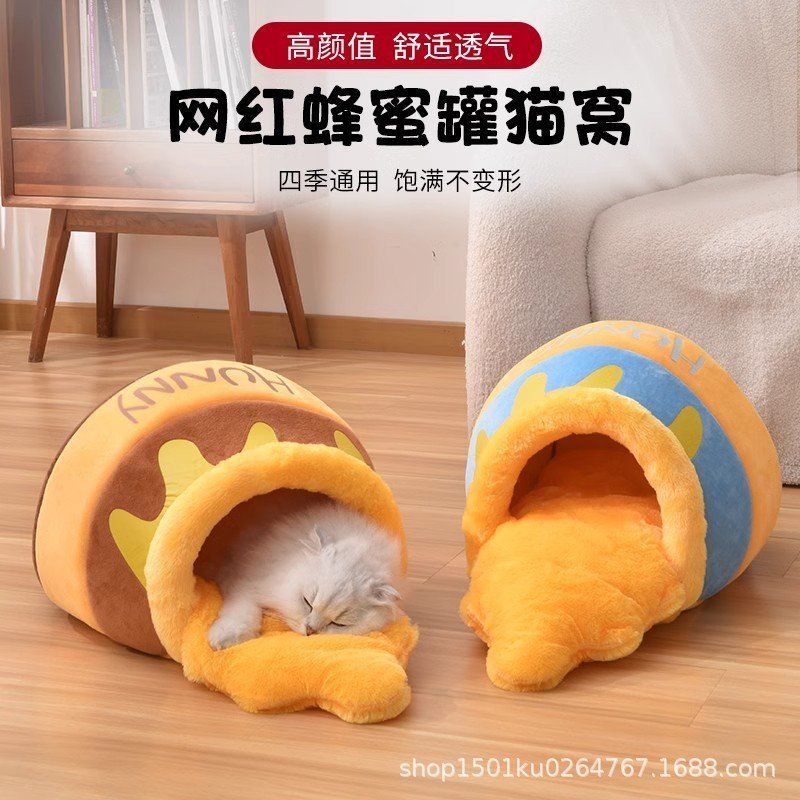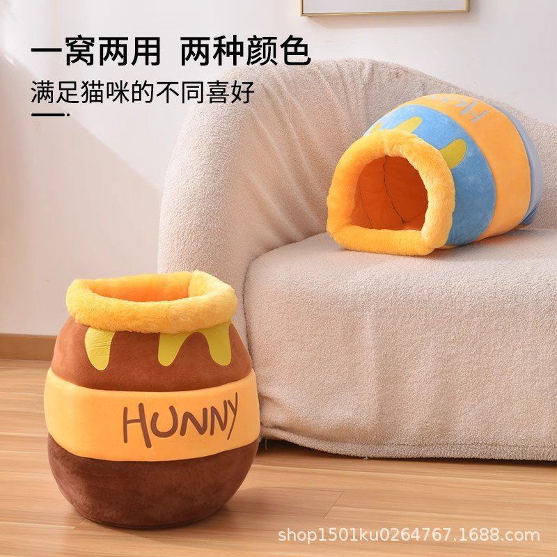 淘宝天猫蜂蜜罐猫窝中小型犬狗窝半封闭冬天保暖宠物窝维尼熊睡袋加厚优惠券折扣价格–彩云间