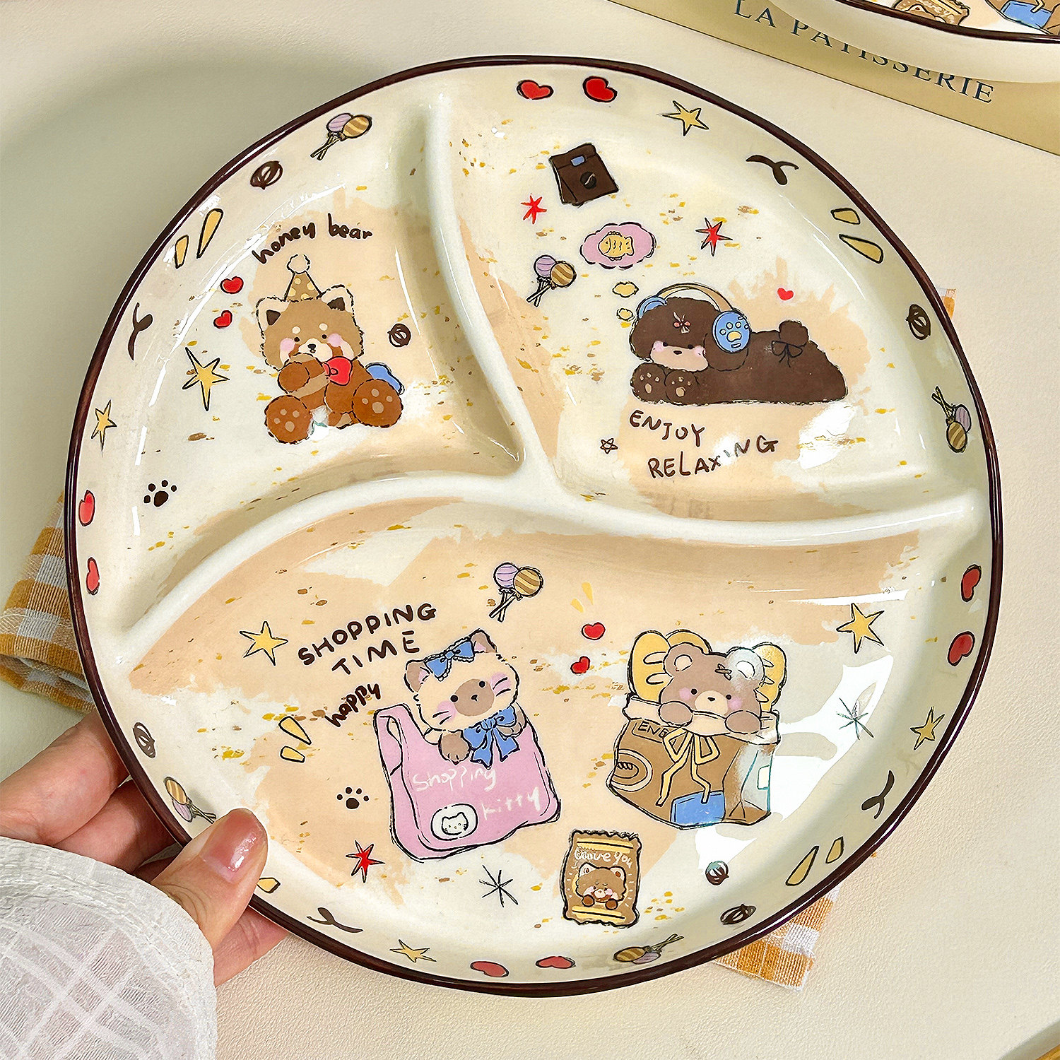 淘宝天猫可爱陶瓷分格盘分餐盘大人减肥专用211减脂定量盘儿童早餐盘家用优惠券折扣价格–彩云间