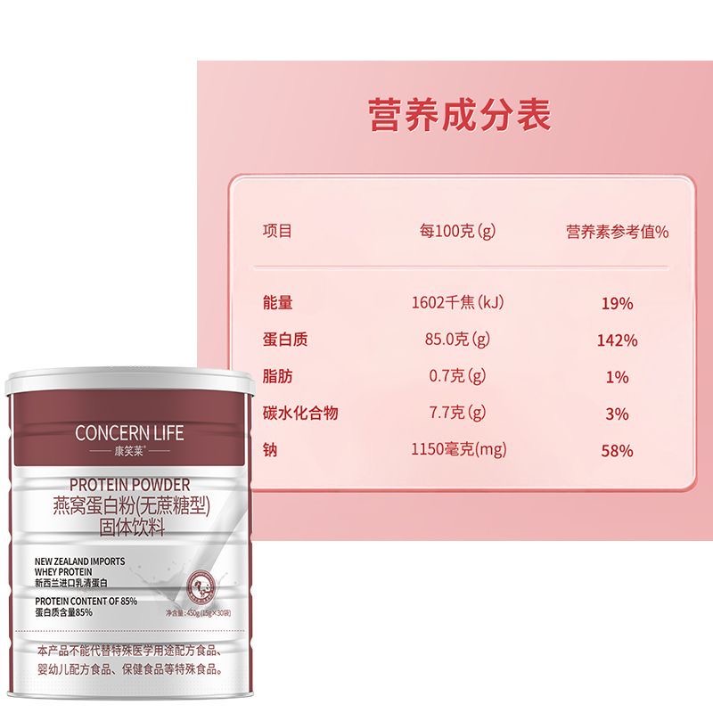 女士减肥专用代餐粉0脂肪0卡无糖乳清燕窝蛋白粉450克高蛋白85%营养高蛋白质高钙网红女神健身自律轻食健康低负担饱腹健康食品
