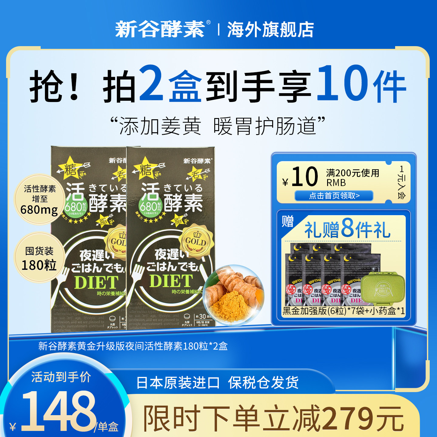 淘宝天猫日本进口新谷酵素黄金热控片嗨吃夜间植物酵素180粒清肠排宿便优惠券折扣价格–彩云间