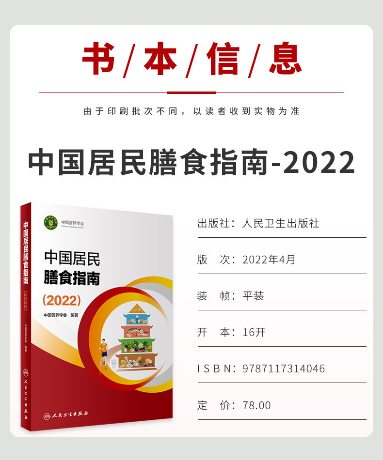 人卫正版中国居民膳食指南2022中国营养学会编著2022孕妇婴幼儿儿童少年老年人素食人群饮食营养指科学减肥食谱营养书籍