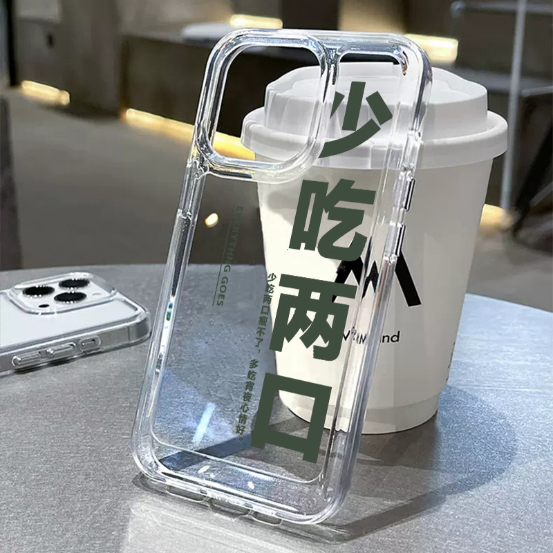 少吃两口手机壳适用于苹果13瘦身iphone14promax情侣14新款12减肥11励志mini男女xr自律xs透明8plus全包套pro
