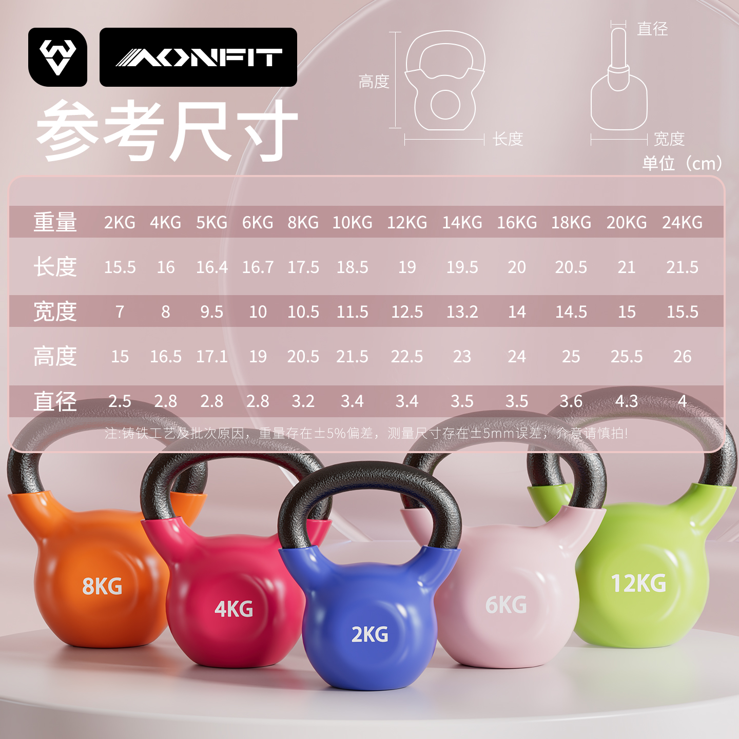 铸铁壶铃女士减肥健身家用瘦肚子实心8浸塑6公斤硬铃壶官方旗舰店