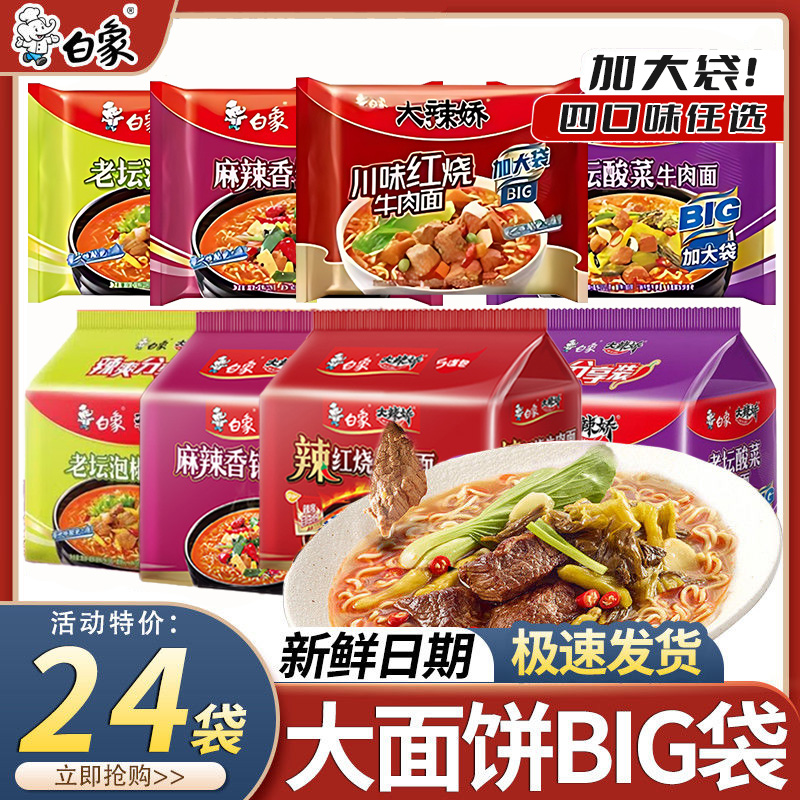 > 白象大辣娇加大袋BIG袋麻辣香锅方便面老坛酸菜泡椒牛肉泡面整箱