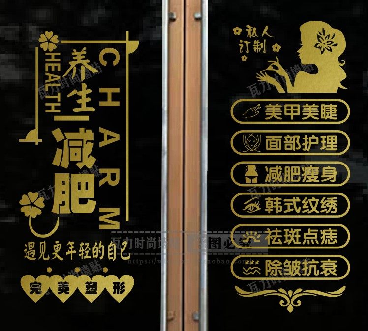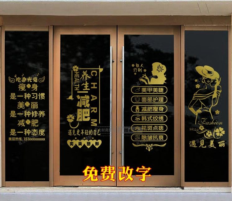 美容院美甲店玻璃门贴纸 纹绣减肥养生馆店铺创意广告字装饰墙贴
