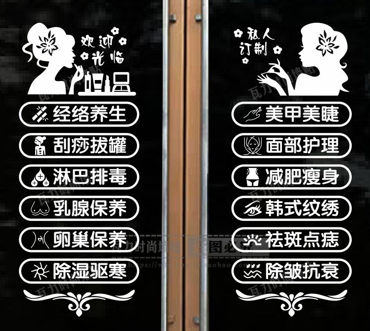 淘宝天猫美容院美甲店玻璃门贴纸 纹绣减肥养生馆店铺创意广告字装饰墙贴优惠券折扣价格–彩云间