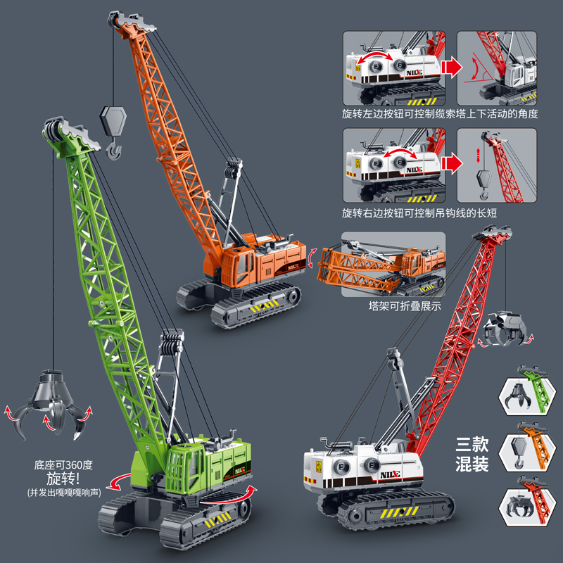 仿真惯性大号可升降吊车抓石夹木起重机工程车模型儿童玩具车男孩