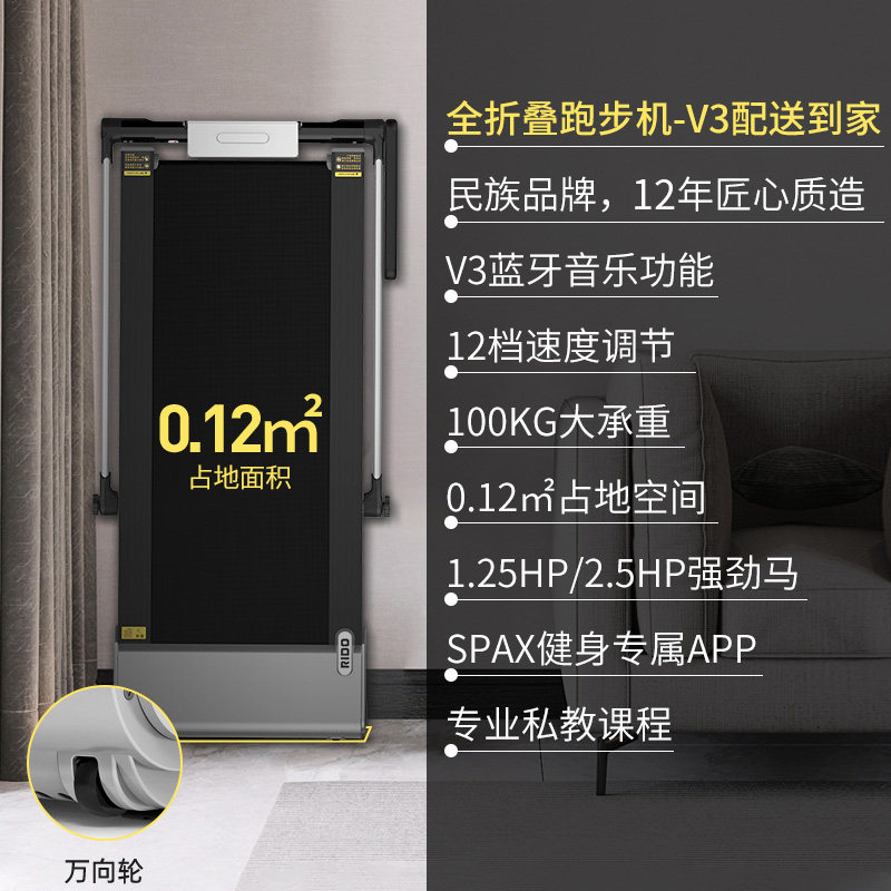 RIDO/力动V3全折叠家用跑步机免安装多功能智能室内减肥健身器材