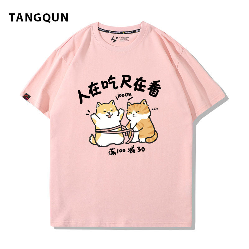 您的位置: 美式复古卡通减肥猫咪夏季纯棉上衣情侣装宽松潮流趣味印花短袖男