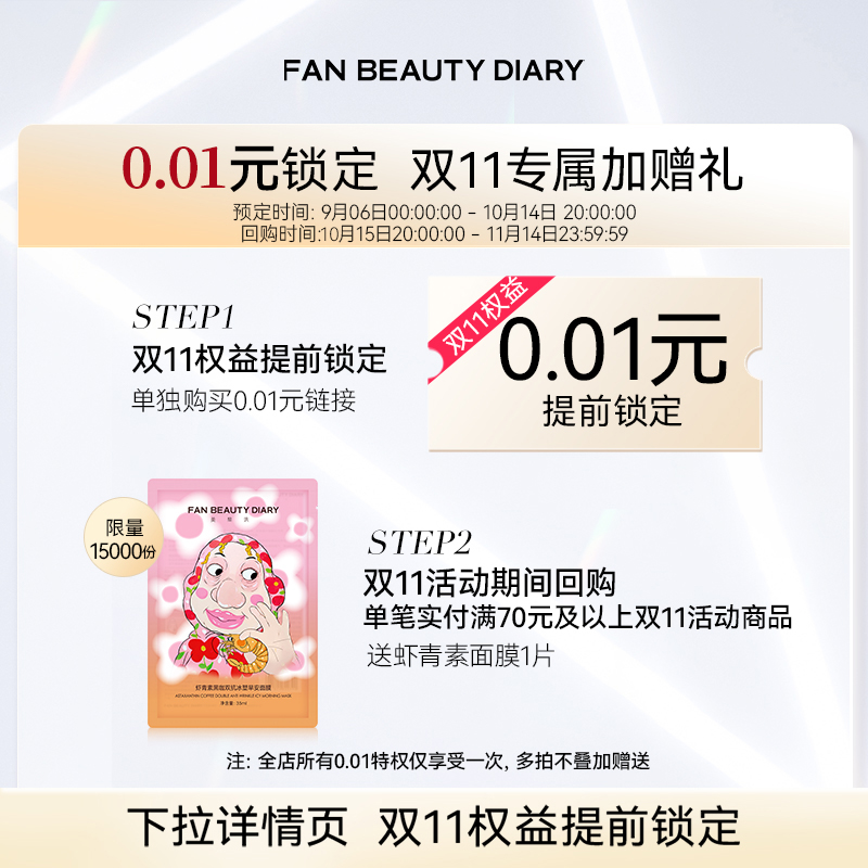 > 【双11抢先购】FAN BEAUTY DIARY冰冰同款虾青素双抗早安面膜