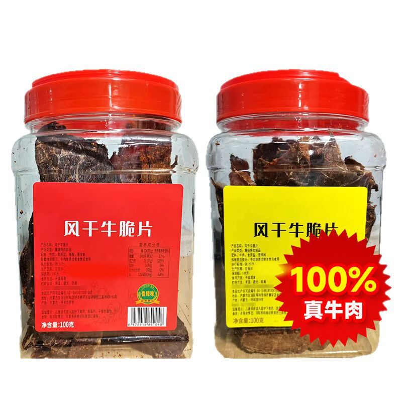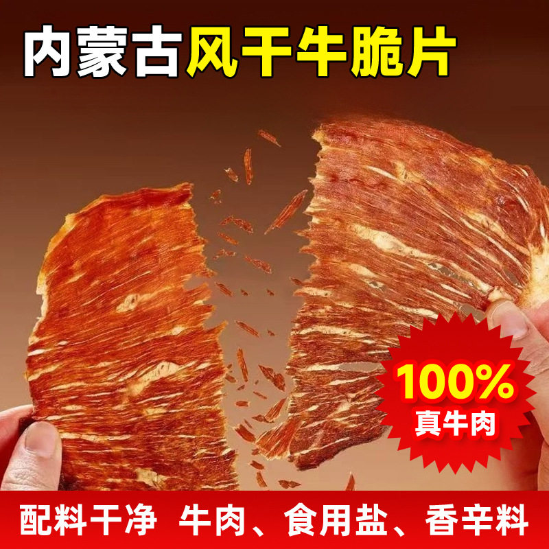 牛肉减脂减肥餐0脂肪0卡0反式脂肪酸无添加剂内蒙古特产风干牛脆片香辣草原薄切脆原味牛脆脆100g营养高蛋网红女神健身解馋小零食