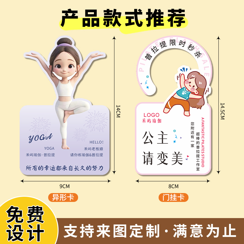 瑜伽体验卡定制普拉提拓客引流地推神器卡片设计异形减肥塑形私教课名片制作美容开业活动广告宣传门挂卡印刷