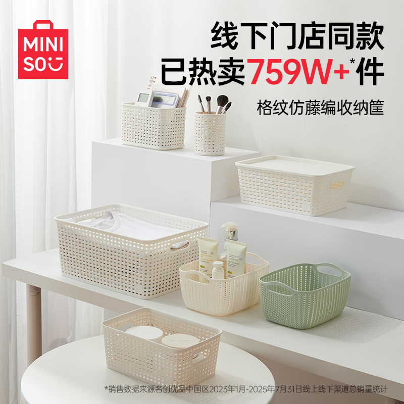 淘宝天猫【预售】MINISO名创优品收纳筐杂物收纳盒家用桌面整理篮子储物筐优惠券折扣价格–彩云间