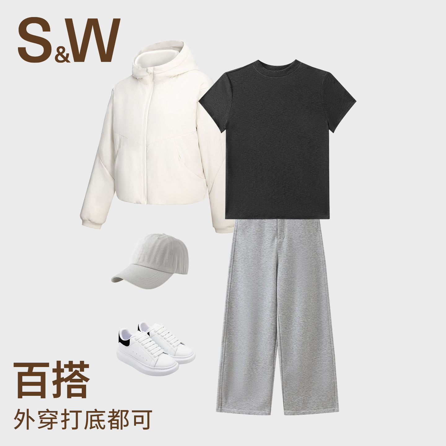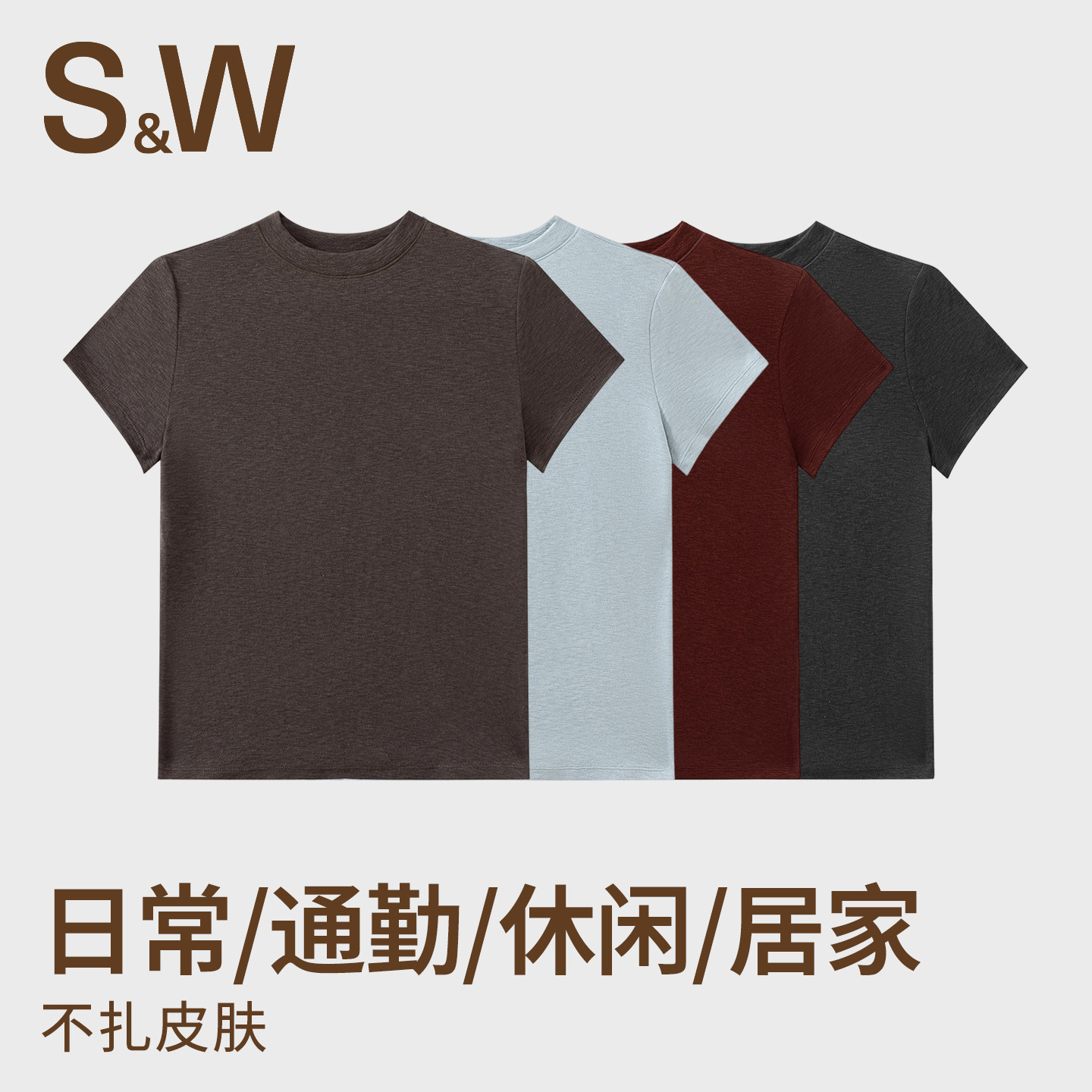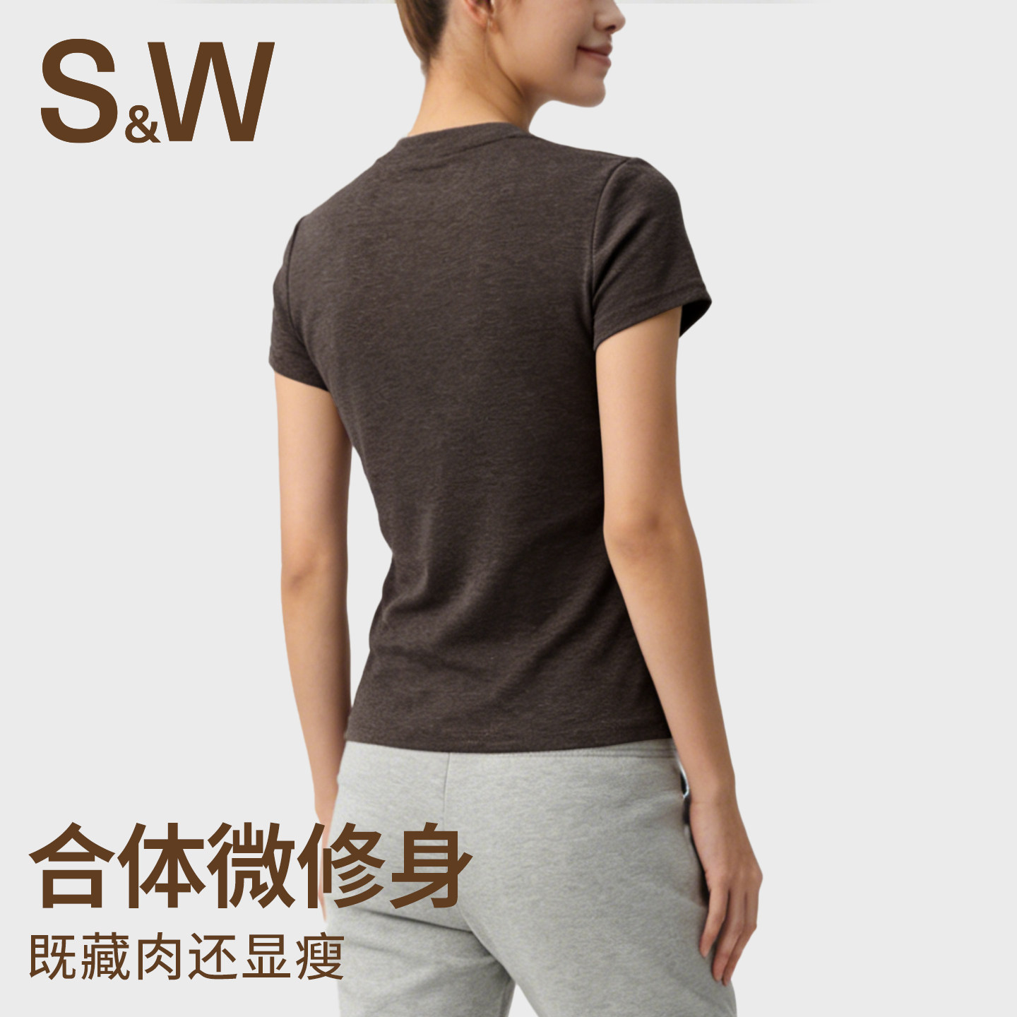 SW速惟正肩圆领短袖t恤女早春纯色打底内搭修身显瘦上衣2026新款
