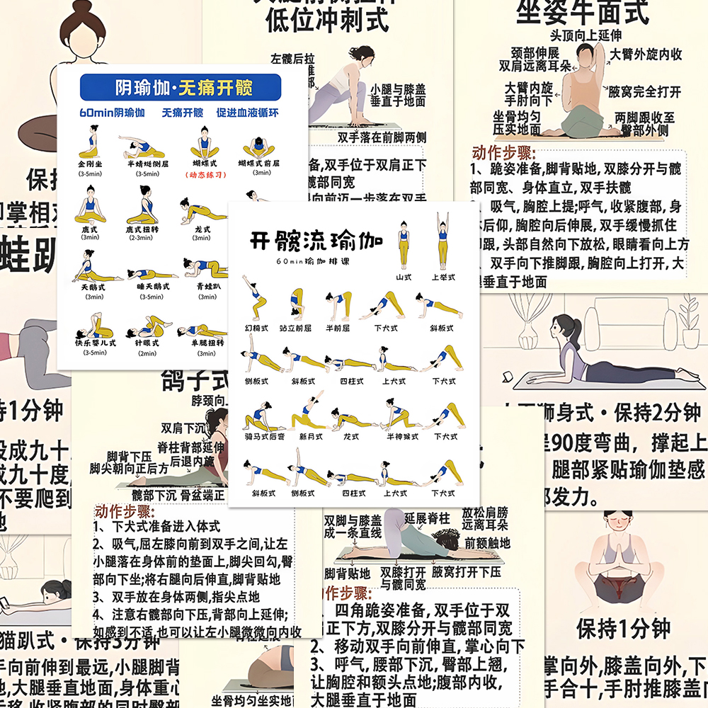淘宝天猫大张】48张常见瑜伽练习贴纸塑身减肥知识科普学习笔记本装饰贴画优惠券折扣价格–彩云间