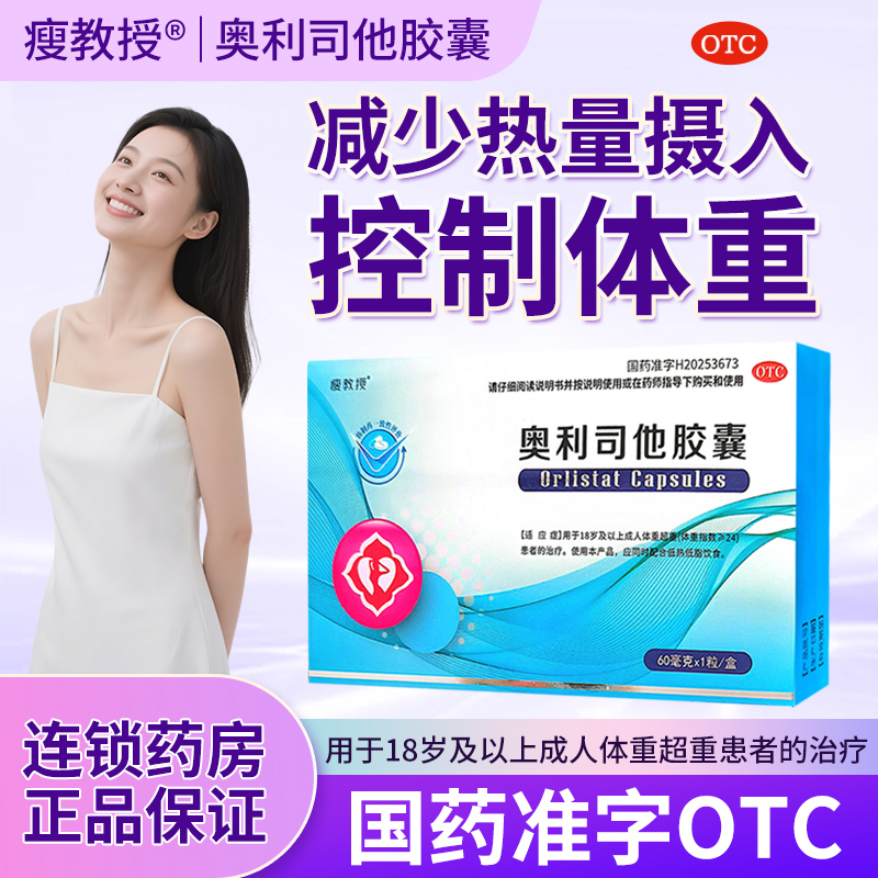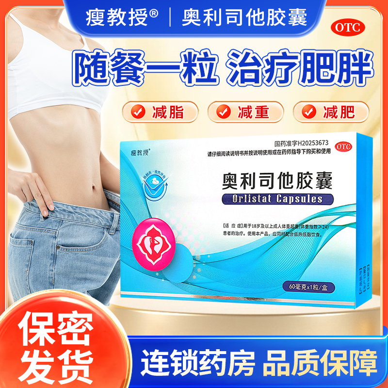 瘦教授奥利司他胶囊OTC减肥减脂减重抗肥胖超重患者官方正品
