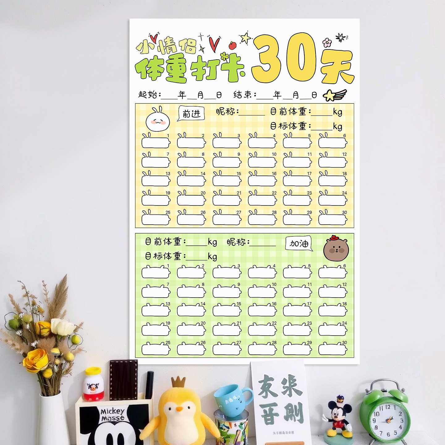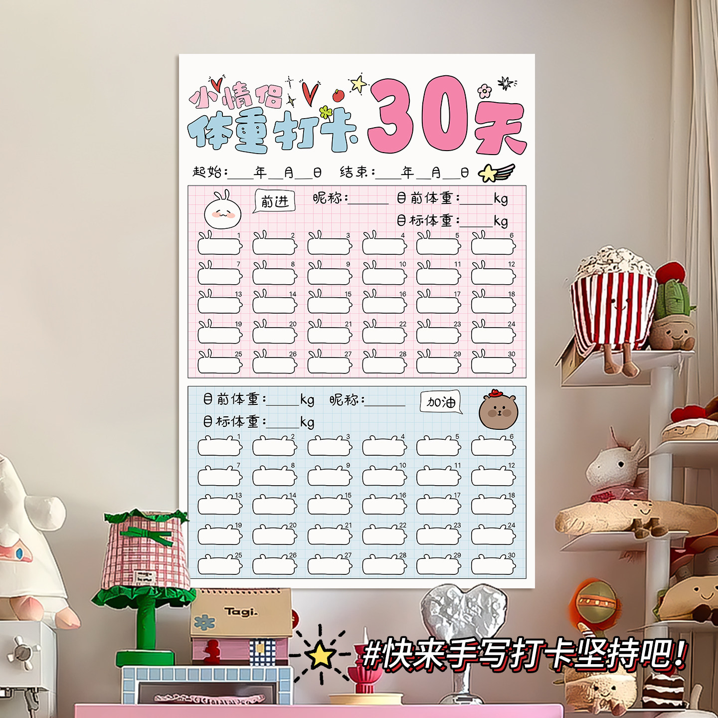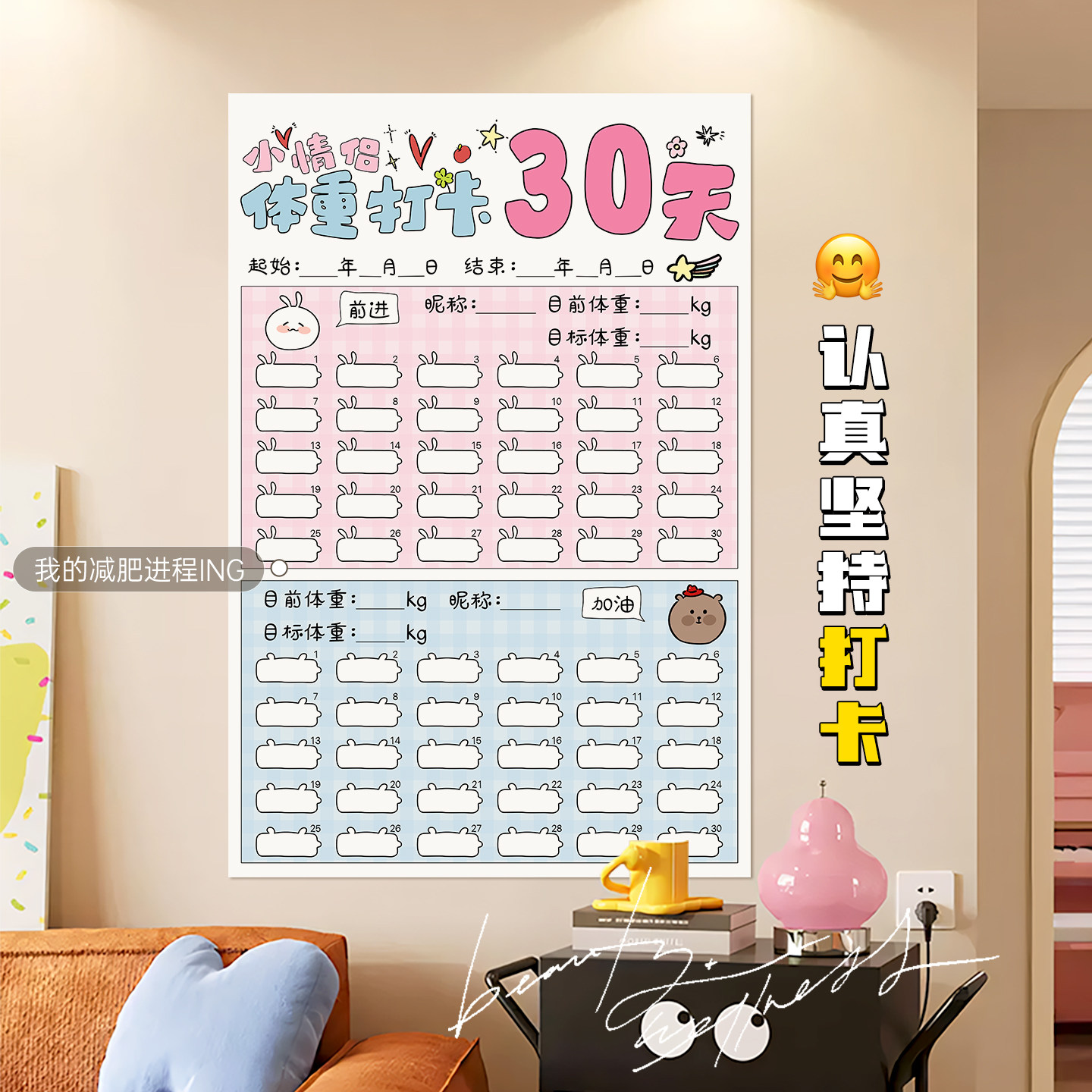 您的位置: 小情侣体重打卡书法墙贴减肥30天计划表自律记录表趣味墙面装饰画