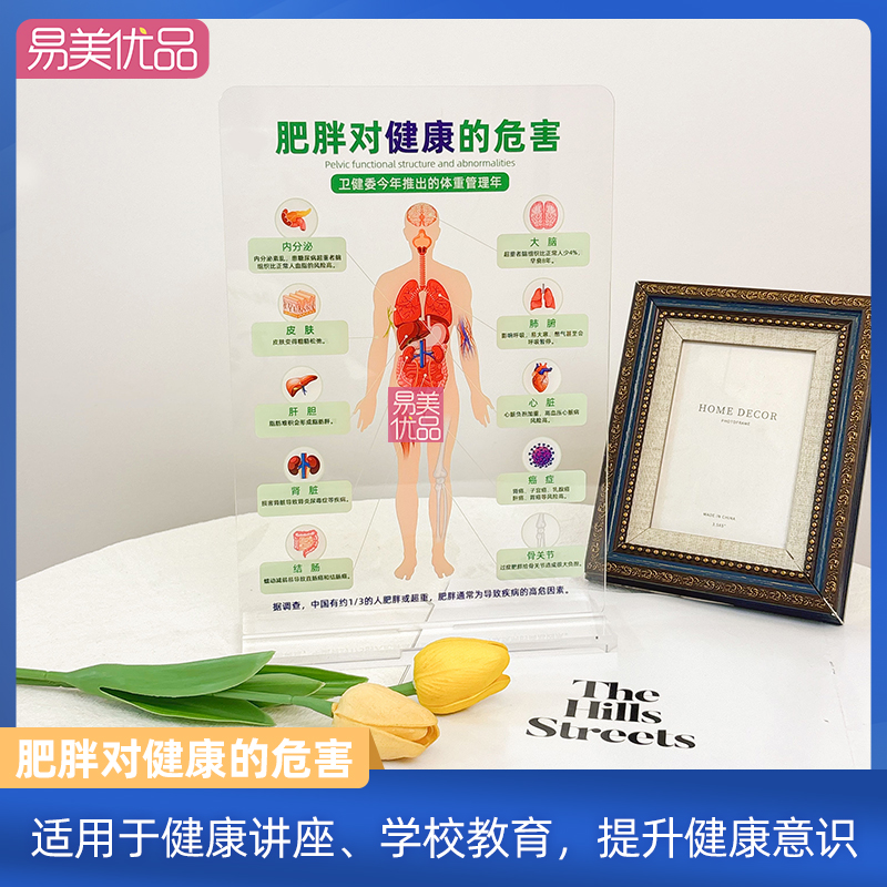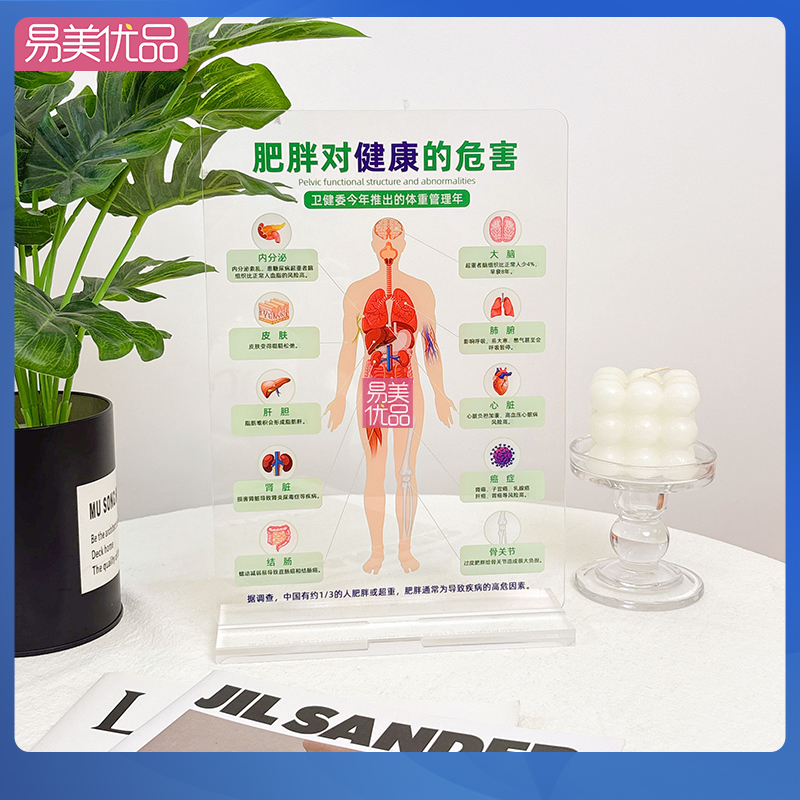 减肥宣传亚克力摆台肥胖对健康影响图示健康教育模型减肥机构教育