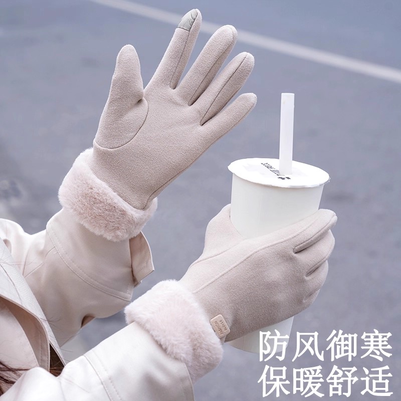 > 冬季电动车手套加厚加绒保暖麂皮绒骑行防寒触屏男女士防风手套