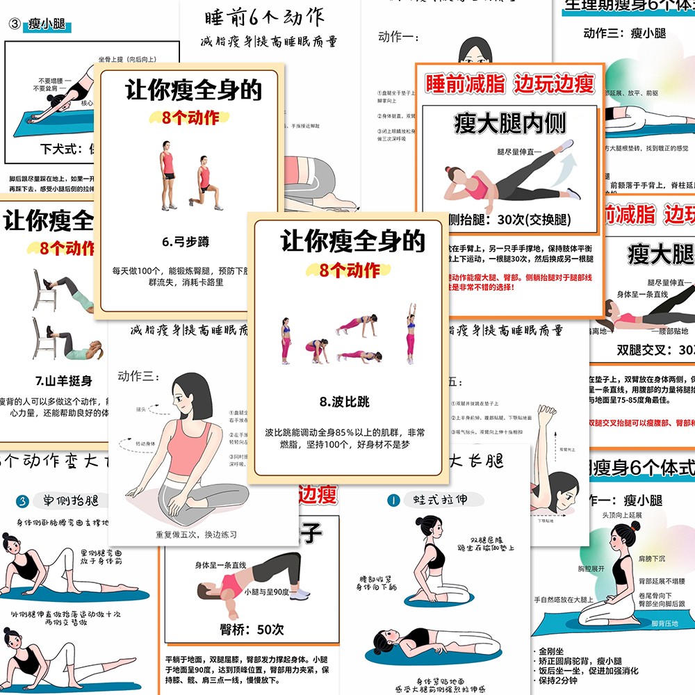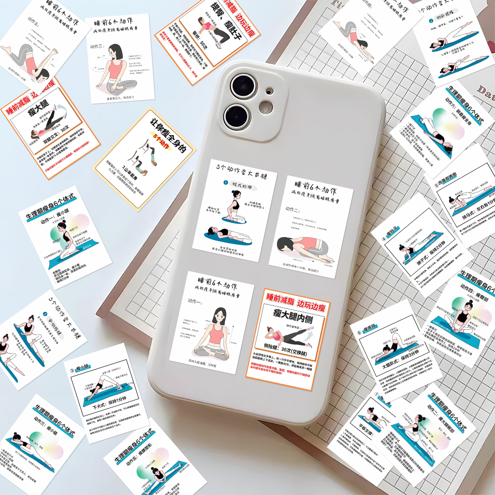 96张减脂廋身动作贴纸正确健康科学减肥方法学习笔记本iPad贴画