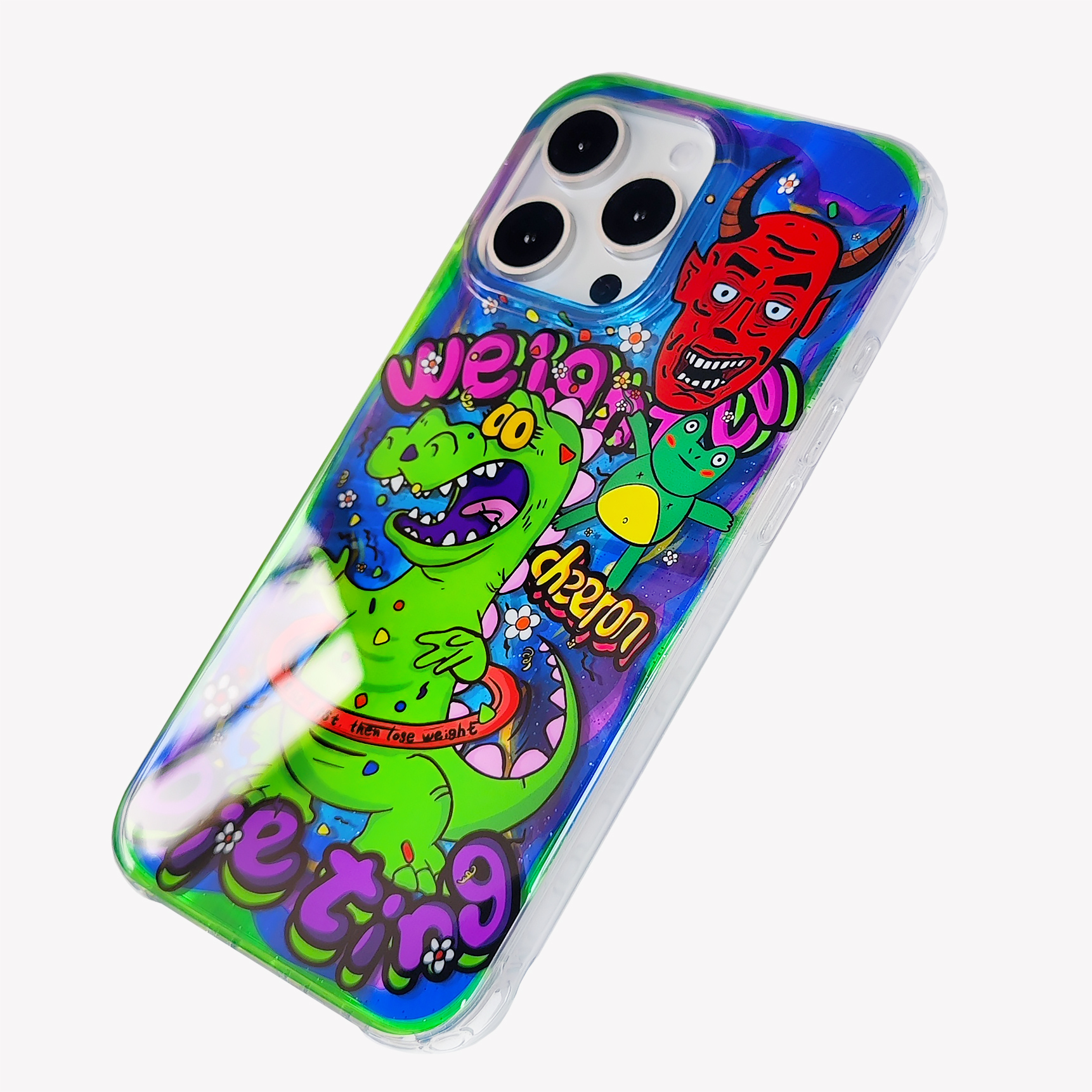您的位置: 〈减肥恐龙〉可爱卡通瘦身镭射IMD双层小众个性有趣新款17promax手机壳iphone1615pro14不撞款防摔保护软壳套
