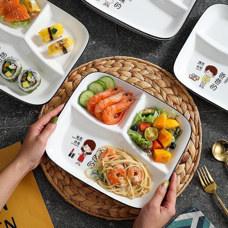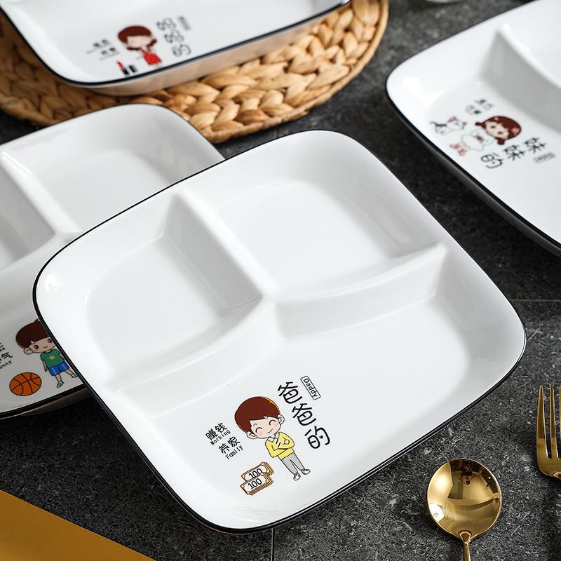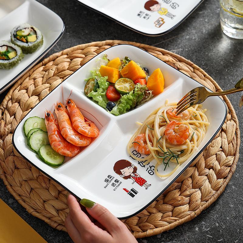 您的位置: 亲子款陶瓷分餐盘子减脂家用早餐具儿童分隔减肥定量长方形三格盘