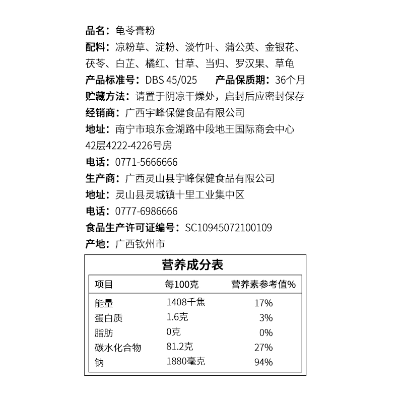 您的位置: 宇峰龟苓膏粉250g自制烧仙草果冻冰粉凉粉奶茶店家用商用广西正宗