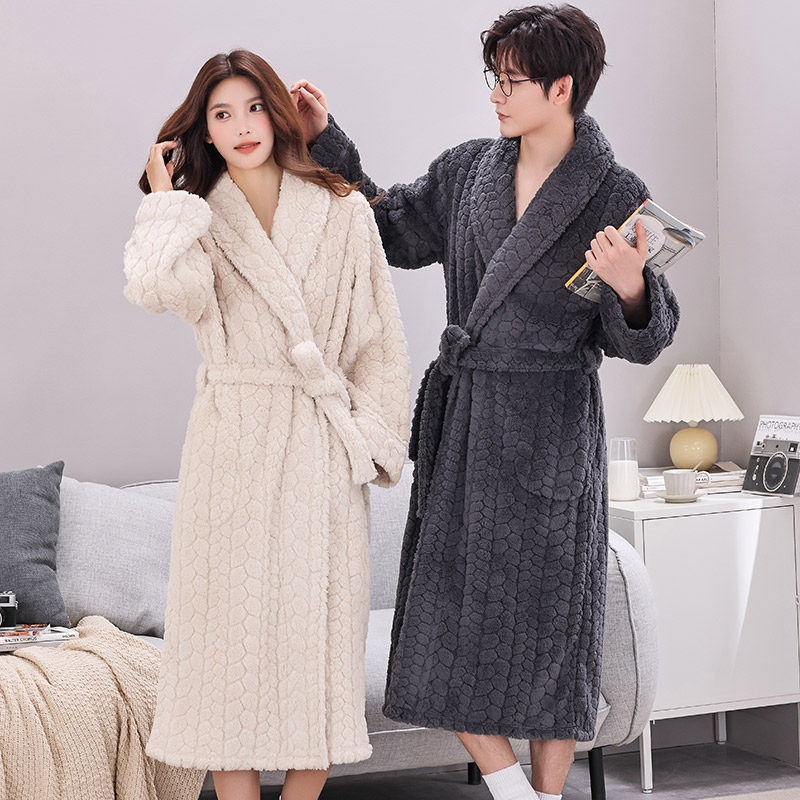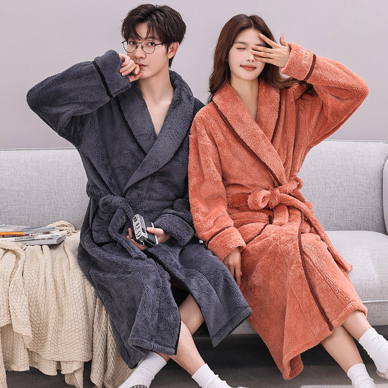 您的位置: 秋冬季珊瑚绒睡袍男加绒加厚情侣睡衣女长款法兰绒浴袍大码家居服