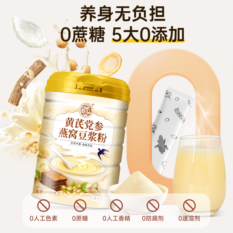 燕窝银耳黄芪党参豆浆粉官方旗舰店正品低脂无添加搭减肥无糖红枣