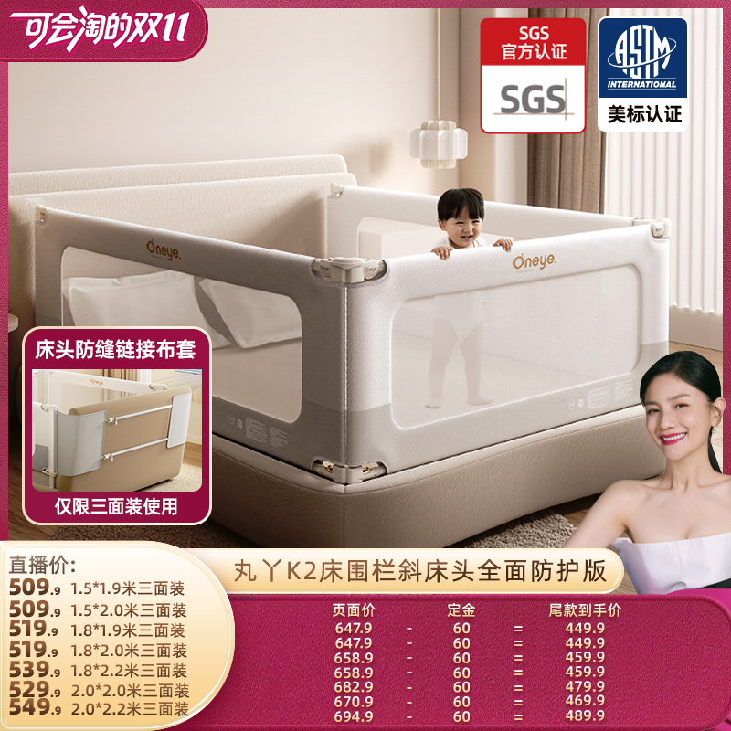 【今晚8点付定金】丸丫床围栏婴儿防护栏儿童床边加高床护栏
