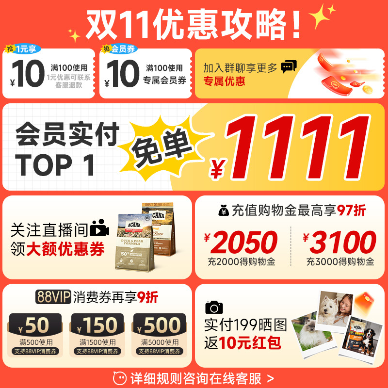 淘宝天猫ACANA爱肯拿减肥轻体犬粮无谷低卡低脂鸡肉进口通用型狗粮11.3kg优惠券折扣价格–彩云间