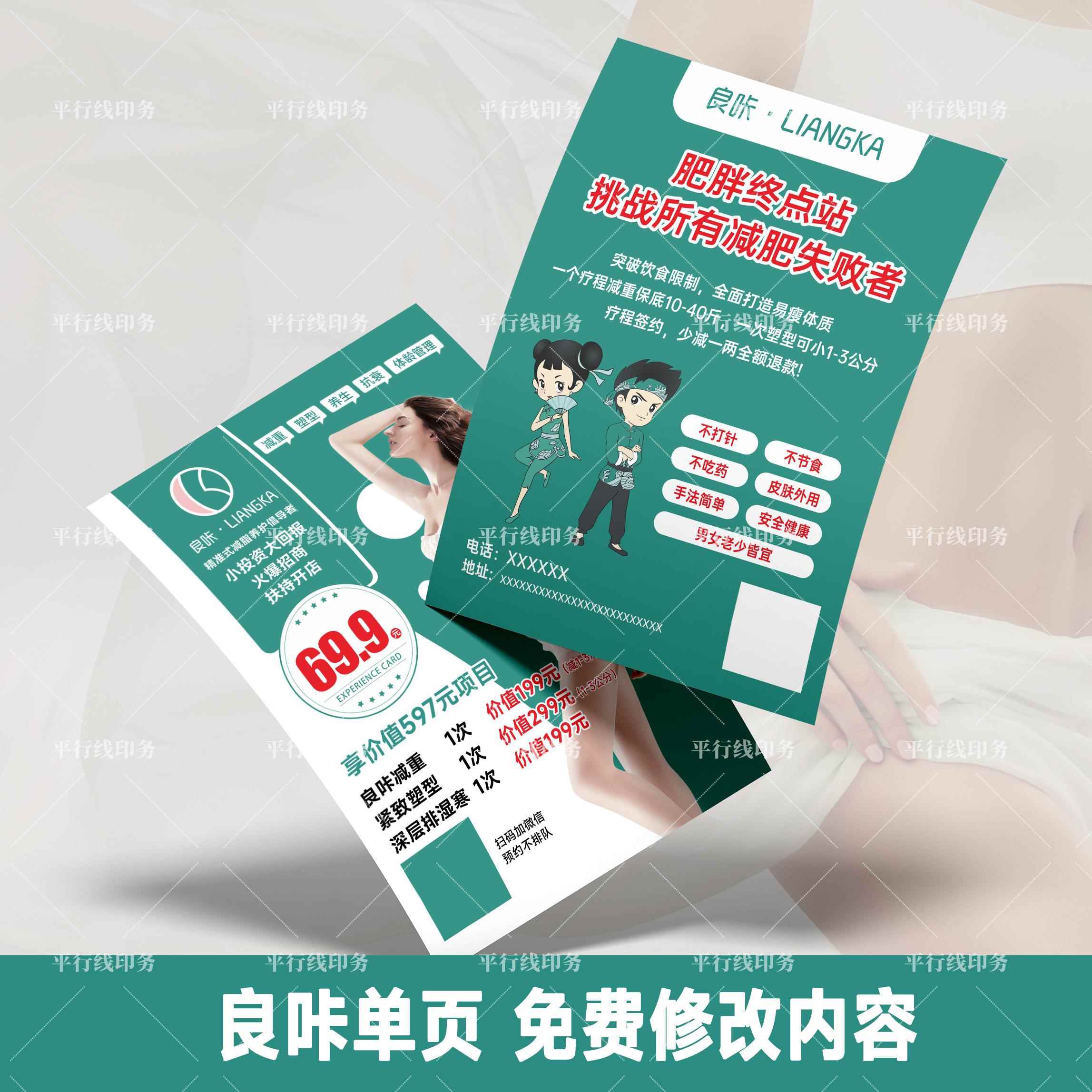 淘宝天猫良咔瘦身开业传单减重减脂减肥拓客体验活动特惠单页定制印刷双面优惠券折扣价格–彩云间