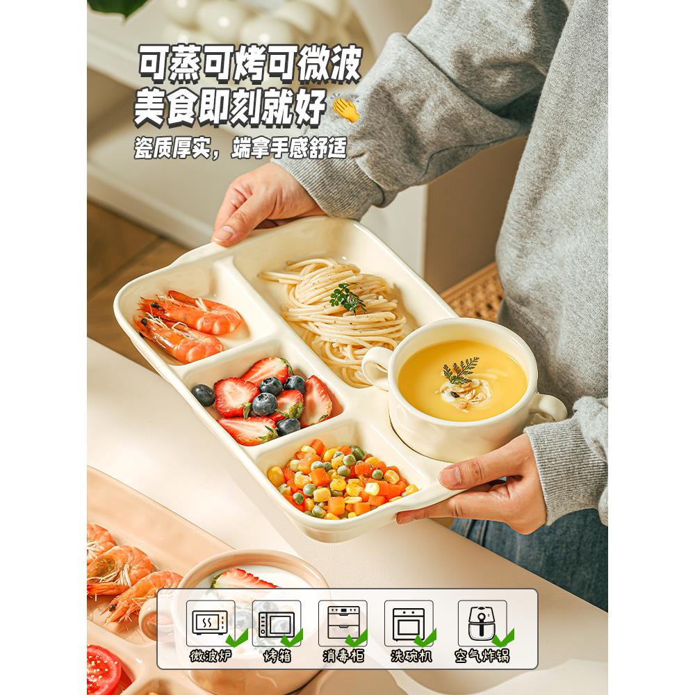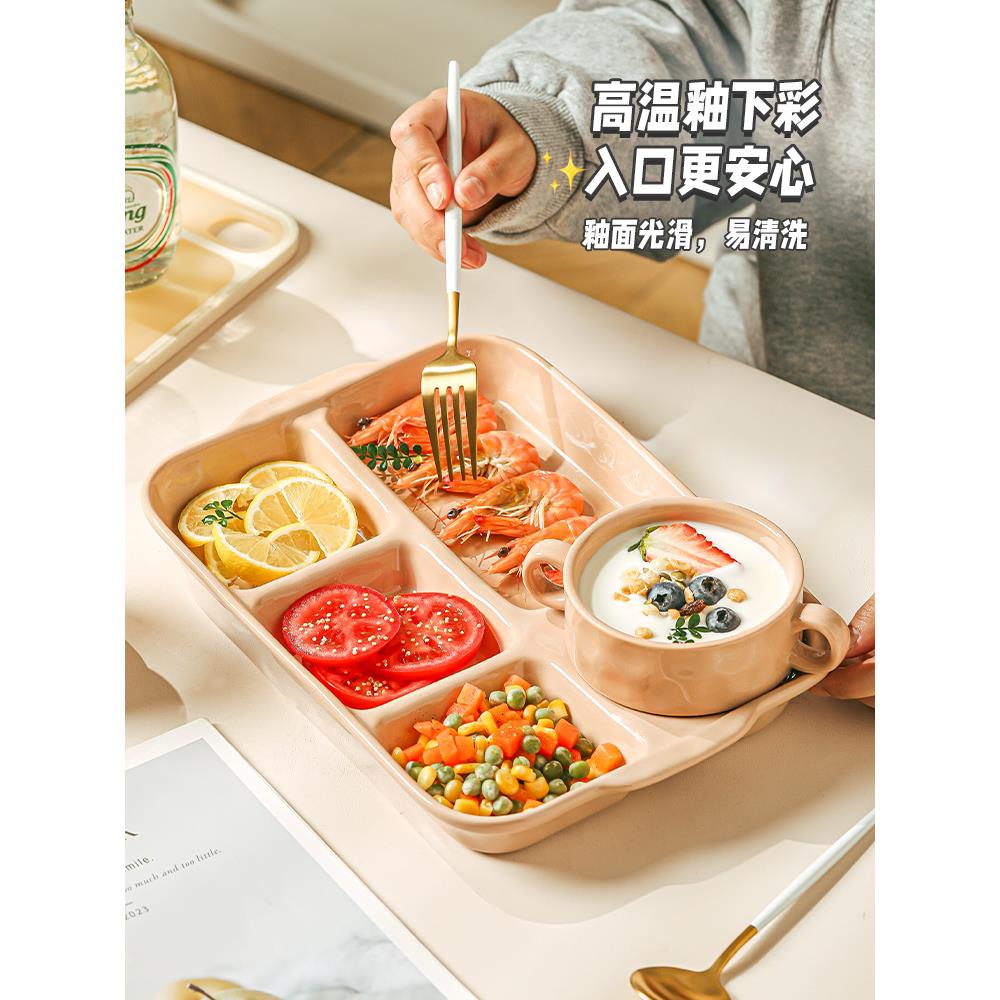 您的位置: 陶瓷分格餐盘大人减肥减脂月子餐具高颜值儿童早餐分餐盘分隔盘子