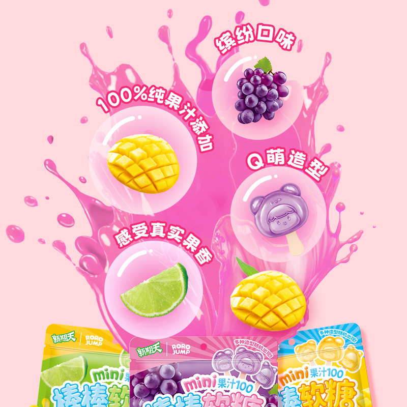 【官方立减4元,限时红包1元,凑200-20到手16.6】右上角淘金币补贴到手更低。kooday/新期天泡泡玛特水果糖软糖60g*3袋.迷你软糖组合,水果味爆棚,网红学生零食人气王~小袋便携,酸甜Q弹,追剧分享两不误,性价比超高!