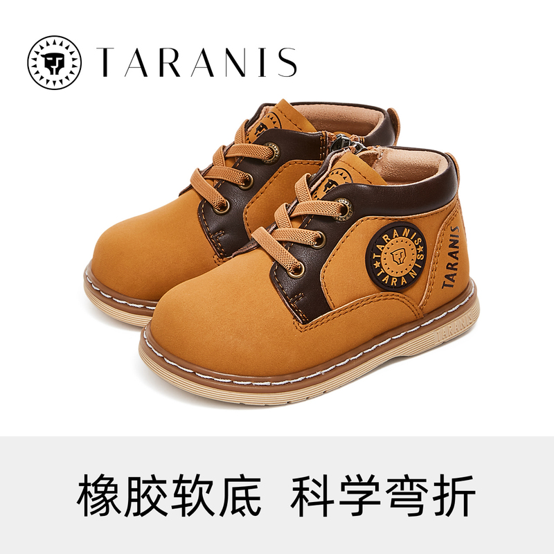 淘宝天猫泰兰尼斯宝宝靴子秋季新款童鞋防滑软底马丁靴儿童靴子拉链小黄靴优惠券折扣价格–彩云间