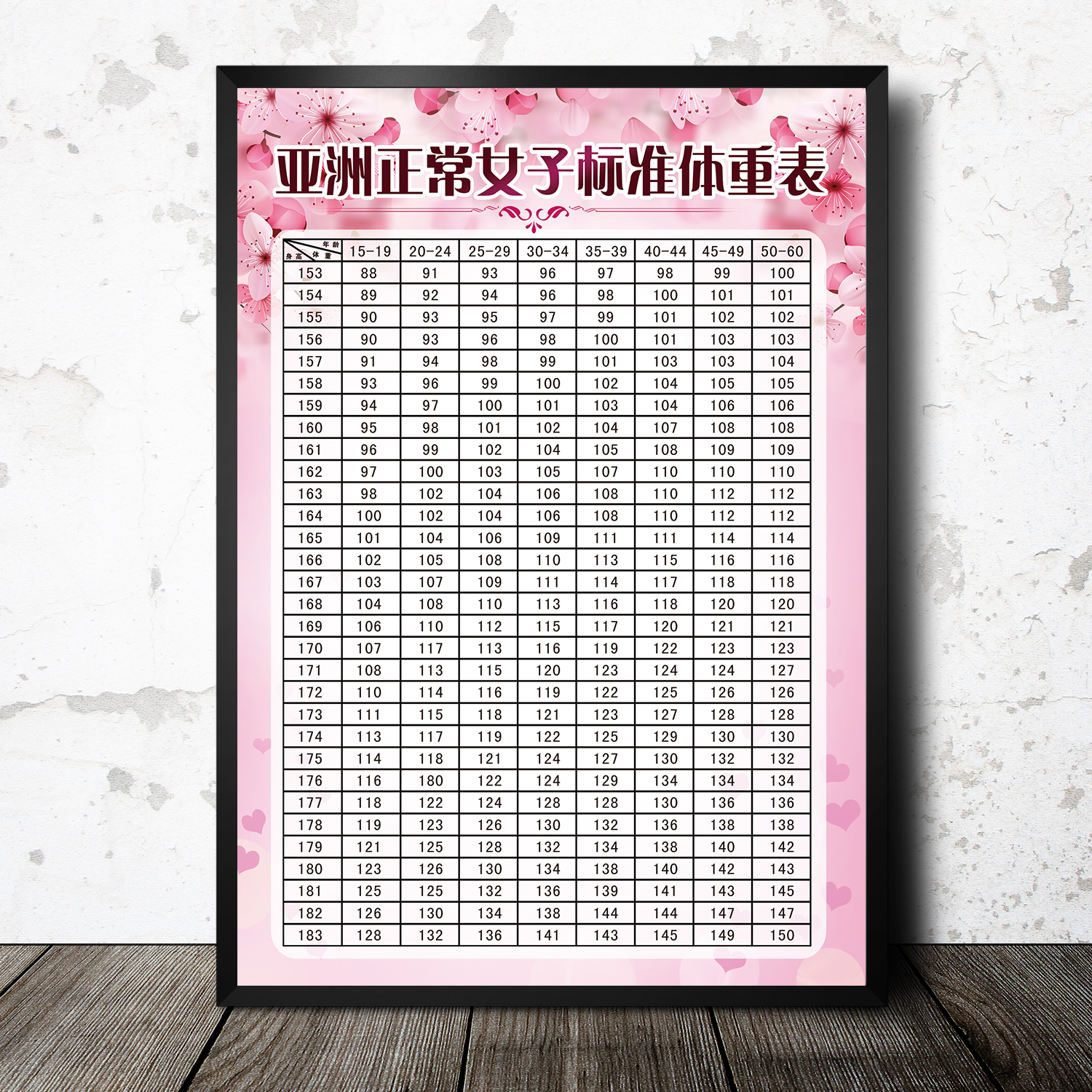淘宝天猫亚洲成人女子标准身高年龄体重图对照表海报美容院减肥瘦身贴墙画优惠券折扣价格–彩云间